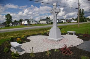 Nous nous souvenons de tous ces pionniers et avons voulu leur rendre hommage en érigeant cette magnifique croix celtique sur laquelle on retrouve le trèfle symbolisant les Irlandais, la fleur de chardon, les Écossais, la rose, les Anglais, et la harpe (lyre), la culture celtique.