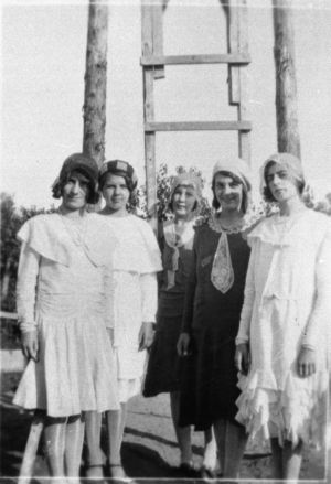 Les gens de Saint-Côme ont toujours été fiers, malgré une pauvreté certaine au tout début de la colonisation et relative par la suite. Ils conservaient une dignité et une distinction naturelle. Les femmes et les filles se tenaient au courant de la mode via les journaux, les catalogues: Dupuis frères, Eaton, Simpson-Sears ou par leurs visiteurs de la ville ou des États. Tôt les jeunes filles apprenaient à coudre avec leur mère ou leur grand-mère sur des moulins à coudre à pédale Singer. Elles se procuraient des patrons Butterick, Simplicity et même Vogue qu'elles se prêtaient en les modifiant à l'occasion. Elles étaient bien mises de pieds en cap. Il y eut des modistes, Albertine Dumas-Fortin et Marie Lachance-Déry, des couturières qu'on pourrait qualifier de stylistes comme Marie-Louise Bernard-Gagnon et d'autres. Les hommes n'étaient pas en reste. Leurs mères, épouses et filles y veillaient. Rose-Anna Paquet tenait pour eux un magasin assez bien garni. Des « soute-à-panneaux » Penman jusqu’aux habits de noces. De gauche à droite, Marguerite Maheux, Jeanne-d'Arc Paquet, Marie-Ange Veilleux, Marie-Blanche Bélanger et Ruth Paquet en 1933.