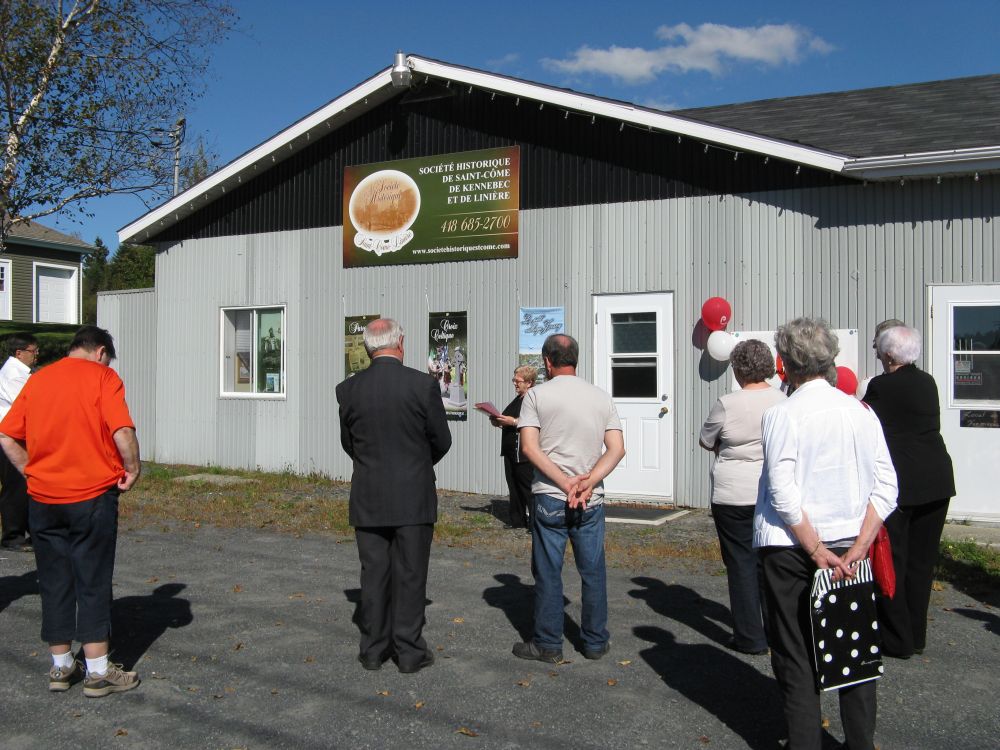 Aujourd’hui, la Société historique a vraiment pignon sur rue. Une magnifique et très visible enseigne indique clairement où nous logeons. Et c’est grâce à vous, M. le Maire et Mme Messieurs les conseillers. Nous vous en remercions chaleureusement. Tels furent les mots de la présidente, madame Poulin, lors de son dévoilement dimanche le 29 septembre 2013, dans le cadre des Journées de la culture.